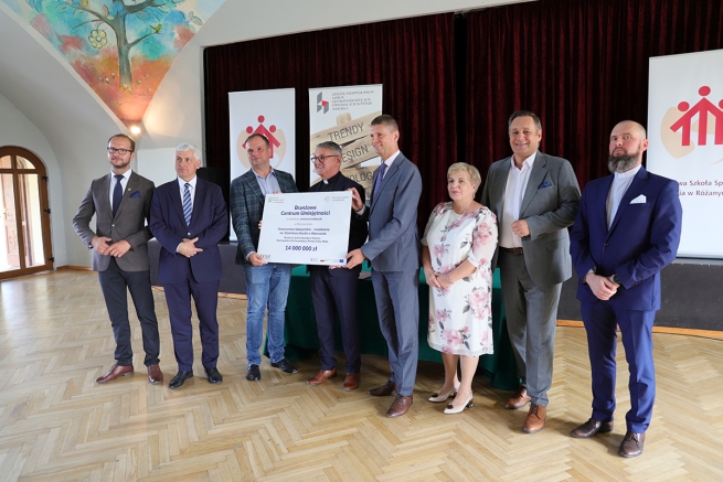 W dniu 11 września bieżącego roku odbyło się uroczyste podpisanie umowy dotyczące utworzenia BCU w Różanymstoku oraz przekazanie osobiście przez wiceministra edukacji i nauki – Dariusza Piontkowskiego – symbolicznego czeku na utworzenie nowej placówki na ręce ks. dra Tadeusza Jareckiego, przełożonego Inspektorii św. Stanisława Kostki w Warszawie. W spotkaniu wzięli także udział: wojewoda podlaski Bohdan Paszkowski, starosta sokólski Piotr Rećko, podlaski kurator oświaty Beata Pietruszka, burmistrz Dąbrowy Białostockiej Artur Gajlewicz, dyrektor Ogólnopolskiej Izby Gospodarczej Producentów Mebli Michał Strzelecki. Ksiądz Inspektor wyraził przekonanie, że Centrum przyczyni się do zmiany kształcenia zawodowego w Polsce, ale także rozwoju gospodarki. Młodzież i dorośli będą kształcić się w BCU na stolarzy i tapicerów w ramach zajęć stacjonarnych: szkoleń zawodowych, kursów i szkoleń branżowych. Działania inwestycyjne obejmują budowę całkowicie nowego budynku edukacyjnego: hali, przeznaczonej na funkcjonowanie BCU Przemysłu Meblarskiego. Hala będzie wyposażona w nowoczesny sprzęt tzn. innowacyjny park maszynowy, którego elementy są niezbędne do prowadzenia nowoczesnej nauki zawodu. Dodatkowym wyposażeniem BCU będzie Mobilne Centrum Edukacyjne (Meblo-Bus) umożliwiające dotarcie z ofertą do tych osób, które nie będą miały możliwości stacjonarnego odbycia kursów i szkoleń, jako działanie uzupełniające do platformy zdalnego nauczania. W ten sposób powstanie zaawansowany technologicznie ośrodek kształcenia, szkolenia i egzaminowania oraz zostanie stworzona przestrzeń dla ścisłej współpracy biznesu (producentami mebli) z edukacją zawodową w dziedzinie przemysłu meblarskiego.