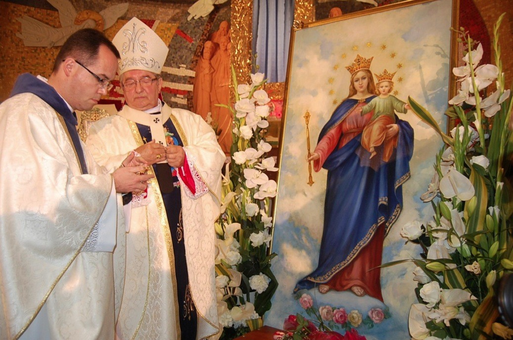 Pragnieniem duszpasterzy, wielu parafian i samego artysty, było to aby korony, wzorowane na koronach umieszczonych na obrazie Maryi Wspomożycielki w Turynie, miały charakter daru za otrzymane łaski, wdzięczności za obecność i działanie Maryi.