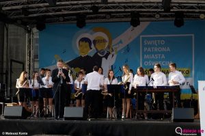 Msza św. została odprawiona w pięknej, odrestaurowanej niedawno kaplicy pw. św. Jacka. W czasie tego spotkania dyrektorów, podczas uroczystej Eucharystii, zostali uhonorowani również salezjanie – jubilaci, zaś ks. Stanisław Łagocki, salezjanin obecnie przebywający w Skawie, otrzymał w tym roku Nagrodę inspektorialną „Mir”. A wszystko to odbywało się w pięknej scenerii artystyczno-kulturalnej za sprawą odbywającego się w tych dniach Festiwalu „Jackowe Granie 2019” (15-17 sierpnia), oferującym bogaty program dla mieszkańców wszystkich grup wiekowych: koncerty, w tym koncert Orkiestry Szkoły Salezjańskiej, projekcje filmów o Księdzu Bosko, gry i zabawy dla dzieci, Rodzinna Gra Miejska… Dodajmy również, że dzień 16 sierpnia był dniem szczególnym, jako że stał pod znakiem obchodów Święta Patrona Miasta Oświęcimia – św. Jana Bosko, którego ukoronowaniem była uroczysta Msza święta.