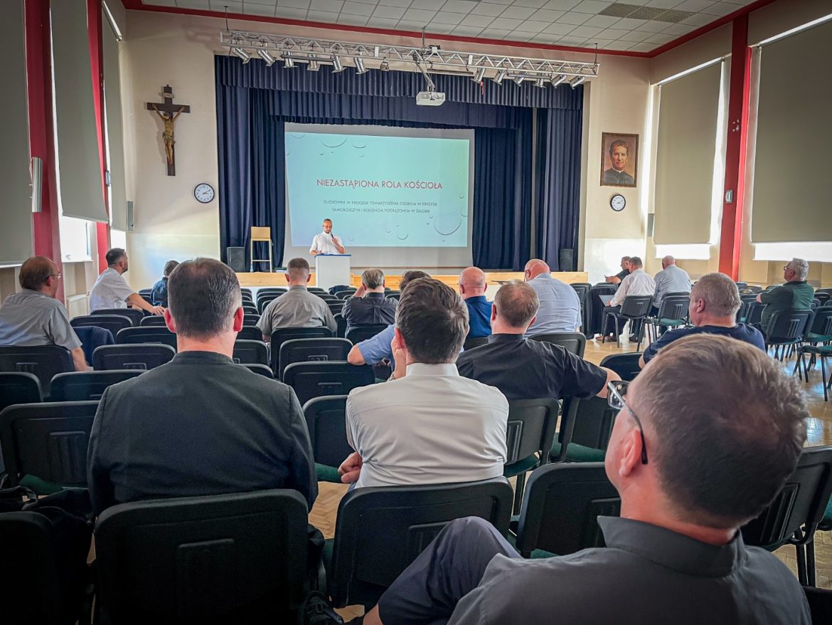 W czwartek rano współbracia spotkali się w kaplicy na Mszy św. W przedpołudniowym bloku roboczym salezjanie uczestniczyli w szkoleniu ze Standardów Ochrony Małoletnich prowadzonym przez p. Krystynę Aleksandrę Dudzis oraz w konferencji dotyczącej zagrożeń alkoholowych wygłoszonej przez ks. Wiesława Kondratowicza. Oba wystąpienia wzbudziły duże zainteresowanie słuchaczy, jednak w związku z panującym upałem wewnątrz i na zewnątrz, wymagały one od nich wiele wysiłku i cierpliwości.