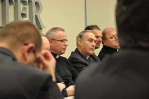 Pierwsze zebranie w tym dniu w sali obrad wypełniło wystąpienie radnego generalnego ks. Johna van den Hengela, który omówił temat najbliższej Kapituły Generalnej „Miłosierni we wspólnocie z ubogimi”.„Nie ukrywam, że pojawienie się takiego tematu na spotkaniu wyższych przełożonych w listopadzie ubiegłego roku zaskoczyło wszystkich, ale szybko uznano, że znajduje się on w centrum naszej duchowości” – wyznał gość z Zarządu Generalnego, przytaczając liczne wypowiedzi i publikacje o. Jana Dehona o miłosierdziu. Jak głosić miłosierdzie Boże w homiliach, wspólnocie, spotkaniach z ludźmi, modlitwie – tymi zagadnieniami będą zajmować się ojcowie Kapituły Generalnej. Równocześnie Kapituła zastanowi się nad obecną rolą wspólnoty w odniesieniu do ludzi ubogich, wykluczonych, znajdujących się często na peryferiach Kościoła, a także poruszy społeczny wymiar sercańskiego charyzmatu.