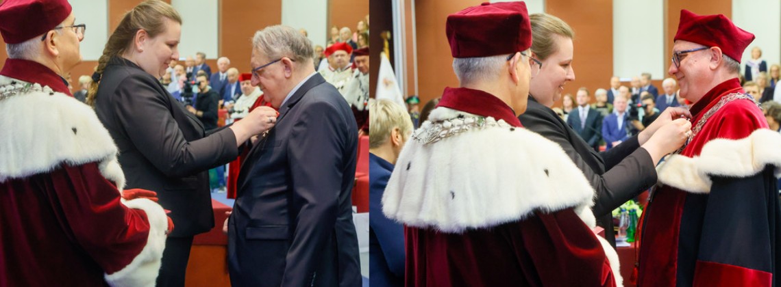 Kilkunastu wykładowców Uniwersytetu Kardynała Stefana Wyszyńskiego w Warszawie podczas Święta Uczelni odebrało odznaczenia państwowe za osiągnięcia w dziedzinie nauki. Wśród nich zostali uhonorowani dwaj sercanie, którzy są pracownikami naukowo dydaktycznymi Wydziału Prawa Kanonicznego UKSW. Krzyż Kawalerski Orderu Odrodzenia Polski wręczono ks. prof. dr. hab. Józefowi Wroceńskiemu SCJ, a ks. dr hab. Marek Stokłosa SCJ prof. uczelni otrzymał brązowy Krzyż Zasługi. Odznaczenia, w imieniu Prezydenta RP Andrzeja Dudy, wręczyła Małgorzata Paprocka, sekretarz stanu w Kancelarii Prezydenta RP, w asyście Rektora UKSW ks. prof. dr hab. Ryszarda Czekalskiego.