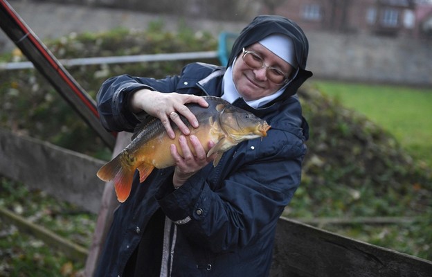 Karpie pochodzą ze stawów przepływowych znajdujących się na terenie opactwa, w których prowadzona jest ekologiczna hodowla karpi. – Są one karmione pszenicą i kukurydzą, dlatego co roku cieszą się dużym uznaniem – mówi matka ksieni, Stefania Polkowska.