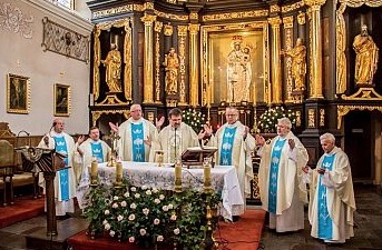 Jubileusz 60-lecia posługi w Stoczku Klasztornym rozpoczął się od uroczystej Mszy św. w stoczkowskiej bazylice. Modlitwie przewodniczył ks. Tomasz Nowaczek MIC, przełożony prowincjalny Zgromadzenia Księży Marianów. – Gospodarzem jest tutaj Jezus. On nas zaprasza, by ofiarować nam coś niezwykle ważnego – samego siebie – mówił w homilii ks. Nowaczek. W swoim słowie przypomniał o wartości prawdy w życiu człowieka oraz niebezpieczeństwie i grzechu, jaki wynika z kłamstwa. – Kard. Stefan Wyszyński opierał swoje posługiwanie na prawdzie. Mówił o prawdzie głośno i odważnie, dlatego też został uwięziony w murach tego klasztoru. Przechowujemy to jako marianie i powodem do świętowania nie jest 60 lat, ale powodem do świętowania obecności marianów w Stoczku jest to, że Bóg zestawia fakty historii i każe na powrót być czujnym i ostrożnym, przy jednocześnie mężnym i odważnym w mówieniu prawdy – zaznaczył prowincjał. – Świętowanie dla samego świętowania jest bałwochwalstwem. Świętowanie obecności Pana Boga to jest świętowanie prawdziwe. Tam gdzie jest Bóg, tam jest i święto – podkreślił ks. Nowaczek.