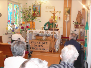 W kaplicy hospicyjnej odprawia się codziennie Msza św, która jest przekazywana za pośrednictwem telewizji domowej do każdej sali chorych. Posługę duszpasterską sprawują kapłani ze Zgromadzenia Świętej Rodziny z pobliskiej parafii. Wciągu roku organizowane są rekolekcje, dni skupienia dla chorych i personelu. Tegoroczne triduum przed Światowym Dniem Chorych prowadził o. Władysław ze Zgromadzenia Ducha Świętego z Bydgoszczy. W rekolekcjach oprócz pensjonariuszy, personelu i Sióstr Elżbietanek uczestniczyła i zaszczyciła swą obecnością przełożona toruńskiej prowincji – Siostra Katarzyna Pawlak. Na zakończenie Światowego Dnia Chorych miejscowy kapelan udzielił podopiecznym Sakramentu Chorych. Po uroczystej Mszy św. rekolekcjonista udzielił błogosławieństwa Najświętszym Sakramentem na sposób lourdzki. Ten wyjątkowy dzień zakończono wspólnym obiadem, a młodzież z Młodzieżowego Ośrodka Wychowawczego z Debrzna usługiwała chorym przy stole i wręczyła własnoręcznie zrobione upominki.