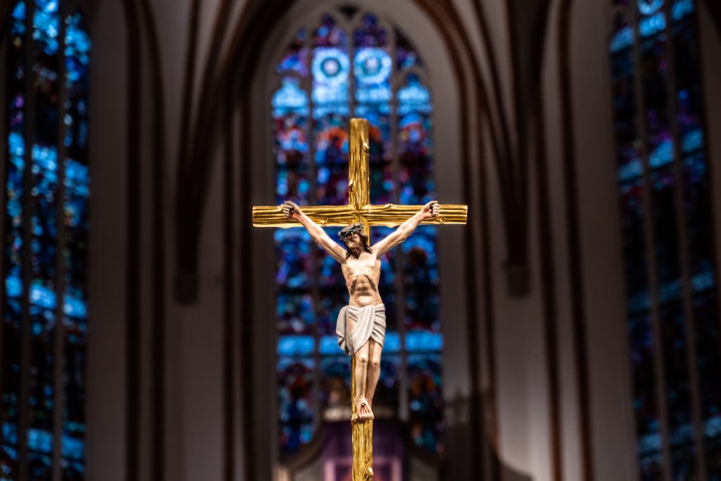 Do VI w. na krzyżu nie umieszczano postaci Chrystusa. Także później nie ukazywano Jezusa umęczonego lecz chwalebnego: jako Króla z diademem zamiast cierniowej korony na głowie, albo jako Arcykapłana, albo jako Dobrego Pasterza. Od wieku XII pojawia się motyw cierpienia. Od tego czasu aż do dziś w Kościele łacińskim zwykle używany jest krzyż gotycki, pasyjny, który wskazuje na mękę i śmierć Chrystusa jako cenę zbawienia. W tradycji prawosławnej do dziś używany jest krzyż chwalebny.
