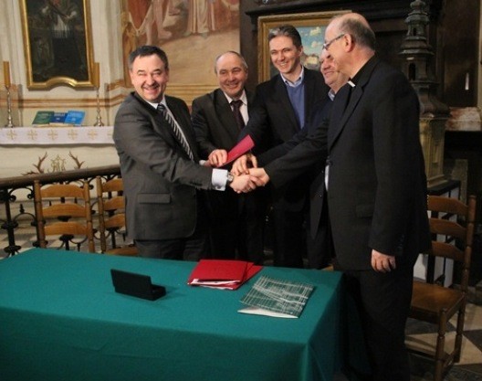 Dziś w murach Sanktuarium Relikwii Drzewa Krzyża Świętego odbyło się uroczyste podpisanie umowy wykonawczej na odbudowę wieży. Dofinansowanie z Unii Europejskiej– 85% środków. Wkład własny, który zapewnia klasztor Ojców Oblatów to 15%. Całość projektu to blisko 7,5 miliona złotych.