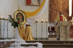Już w sobotę, 24 maja, rozpoczęło się triduum przed uroczystością koronacji obrazu MTA w parafii św. Jadwigi Królowej w Gdyni-Karwiny. Duchowe czuwanie oraz Eucharystia pod przewodnictwem Księdza Krzysztofa Czai, proboszcza sąsiedniej parafii rozpoczęła uroczystości koronacyjne. W homilii ksiądz Krzysztof przywołał teksty nowenny, która przygotowywała wszystkich duchowo zaangażowanych do koronacji.