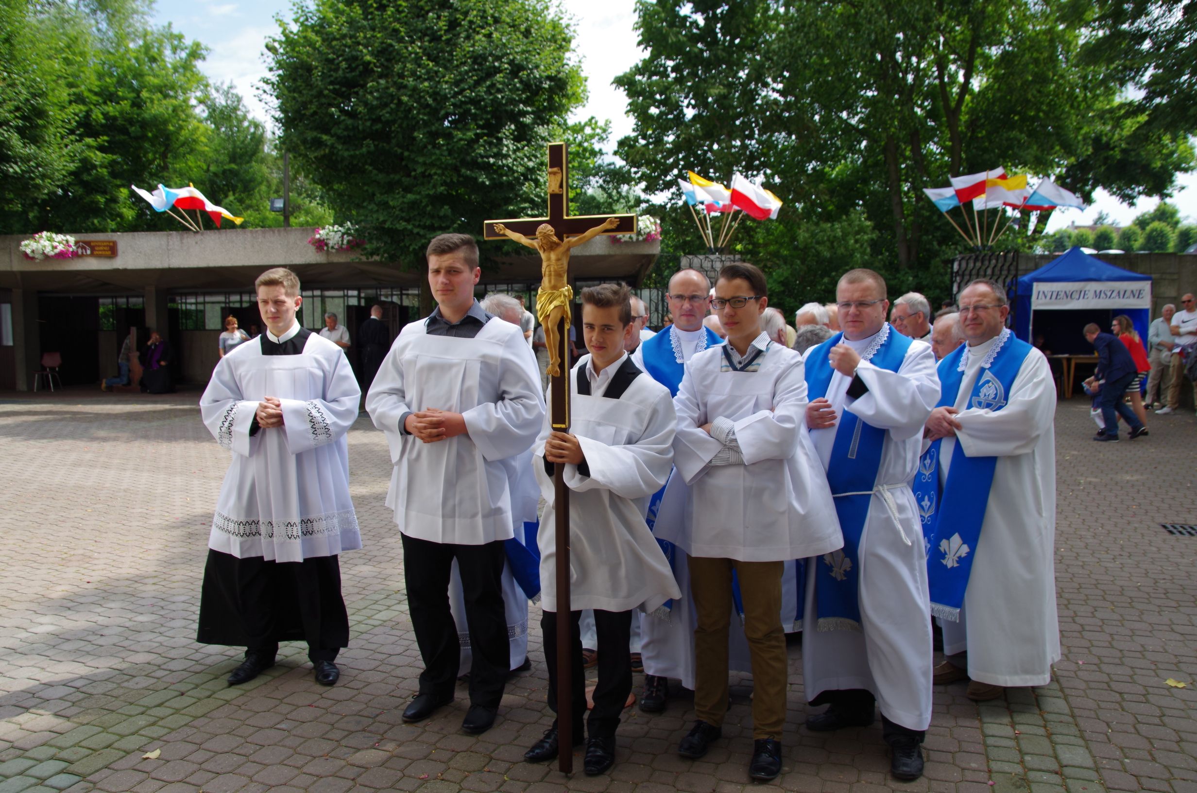 O godzinie 15.00 do tronu Matki Bożej Tuchowskiej pielgrzymowali członkowie Rycerstwa Niepokalanej oraz Trzeciego Zakonu Franciszkańskiego. Głównym celebransem i kaznodzieją był o. Stanisław Piętka OFM Conv., prezes Narodowego Stowarzyszenia Rycerstwa Niepokalanej w Polsce. „Uczyńcie ją znaną na całym świecie” – te słowa sprzed 150 laty skierował papież Pius IX do Redemptorystów, powierzając w ich opiekę ikonę Matki Bożej Nieustającej Pomocy. Tymi słowami również kaznodzieja rozpoczął swoje kazanie. „Św. Maksymilian Kolbe mówił podobnie. Nie tylko słowa, ale całe życie Maksymiliana było nastawione na zaznajomienie całej ludzkości z Maryją, Matką ludzi”. Przez Maryję Chrystus doznaje największej czci. Droga przez Maryję do Jezusa jest najpewniejsza, najlepsza i najkrótsza. „Wielkość życia założyciela Niepokalanowa nie kaźnią głodowego bunkra, ale ideą królowania Maryi trzeba mierzyć”. Jest to wiadomość o jej miłosiernym sercu nieustannie niosącym pomoc. „Jako naród staliśmy się Chrystusowi, a przez Chrystusa synami i córkami Maryi”. Widząc krzyż, widzimy nie tylko Chrystusa, ale i Maryję. Przez Maryję otrzymujemy nowe życie w Chrystusie, ponieważ Ona jest Matką Miłosierdzia. Maryja jest zawsze w tym samym miejscu: obok krzyża, przy Jezusie i przy św. Janie. „Prawdziwa postawa rycerza: stanąć obok Maryi, by usłyszeć: Oto Matka twoja”. Matka Boża Tuchowska to ta, która pomaga nam, kocha, nie odrzuca. „Ona wie najlepiej kim jest człowiek. (…)”. Matka Boża Tuchowska trzyma w prawej ręce różę. To przede wszystkim symbol różańca, który przetrwa wszystko, symbol nadziei. „Mamy wakacje. Zdawałoby się, że należałoby się rozbroić. Ale to nie przystoi rycerzowi”. Nie powinniśmy nigdy rezygnować z różańca. Matka Boża Nieustającej Pomocy ukazuje nam narzędzie pomocy – krzyż Chrystusa. Św. Maksymilian Kolbe rozszerzał kult Niepokalanej na cały świat – to była jego odpowiedź na wspomniane na początku wezwanie. „A jaka jest moja odpowiedź? (…) Czy uczyniłem Maryję znaną mojemu bratu, siostrze? (…) Czy pośród osób pod krzyżem znajduję się również ja – Jej syn, Jej córka?” – pytał kaznodzieja. Dopiero gdy odpowiemy na te pytania, Matka Boża usłyszy nasz krzyk.