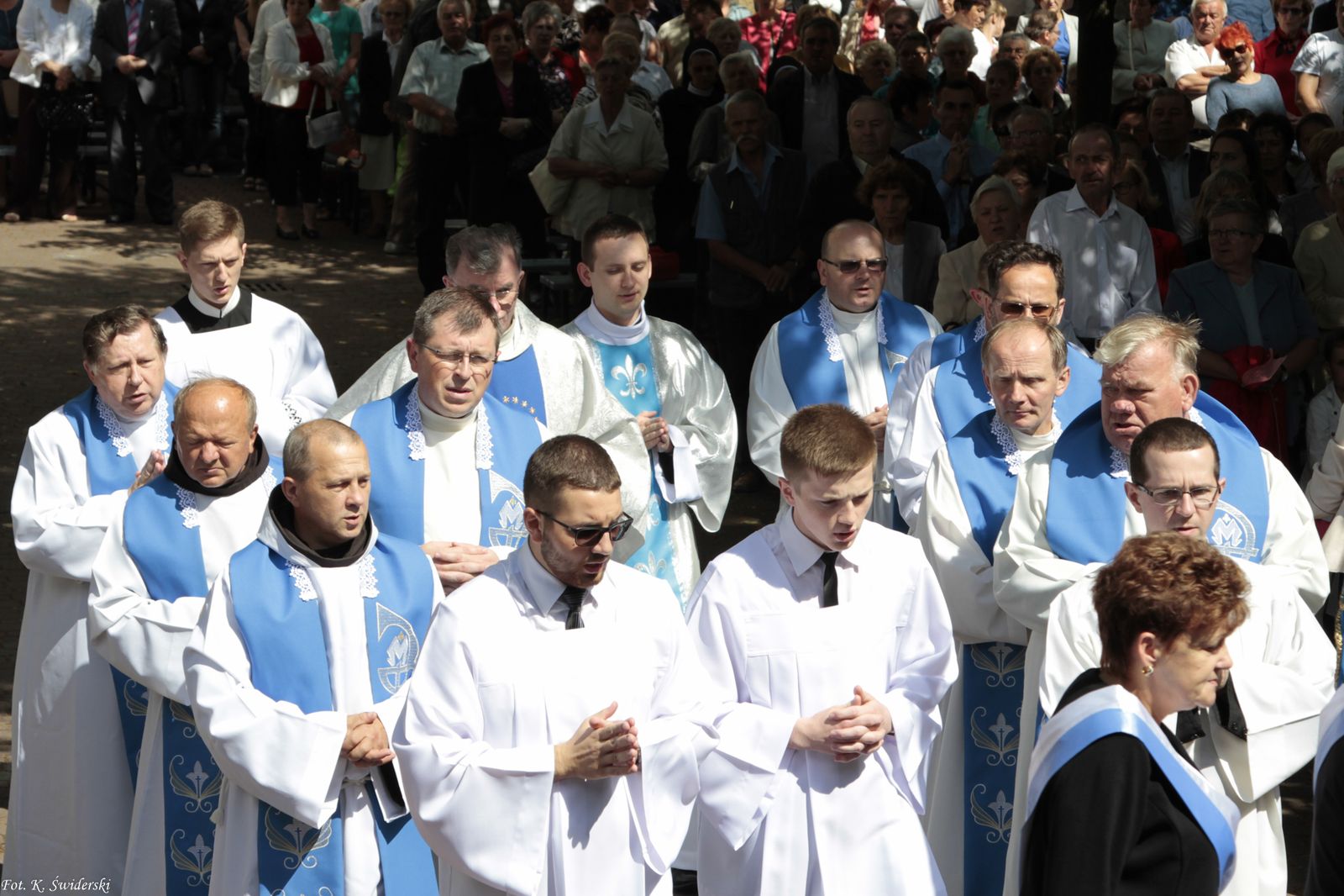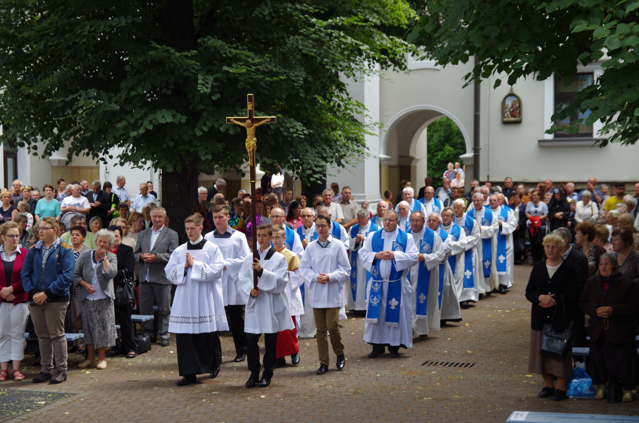 Co roku do tuchowskiej Matki pielgrzymują kapłani diecezjalni i ojcowie redemptoryści przeżywający jubileusz 50 lat kapłaństwa oraz kapłani seniorzy. Głównym celebransem Liturgii był ks. Roman Wójcik, przeżywający diamentowy jubileusz kapłaństwa. Homilię wygłosił o. Ireneusz Homoncik CSsR. Parafrazując słowa Jana Pawła II, kaznodzieja wołał: „Przyzwyczaili się mieszkańcy Małopolski, (…) Tuchowa i okolicy przychodzić tu do Niej i mówić o wszystkim Matce, Tej, która tu na tej górce w jakiś szczególny sposób jest”. Stajemy przed Nią, Matką Miłosierdzia, Matką Nieustającej Pomocy, którą się staje dzięki Chrystusowi. Po to pielgrzymi tu przybywają, bo czują szczególne miejsce, gdzie Maryja jest, czeka na nich i z nimi razem się modli. Ojciec Ireneusz zachęcał, by w ciszy kościoła, przed Jej obrazem, uczynić bardzo głęboką refleksję nad własnym życiem. Za dobro trzeba Bogu dziękować, a za słabości i grzechy, żałować. „Nigdy nie odchodź z tego miejsca z grzechem. Nie wracaj do domu z grzechem!”. Tu jest miejsce uzdrowienia. Następnie kaznodzieja podzielił się kilkoma myślami nad sakramentem kapłaństwa. „Co znaczy słowo kapłan?”, pytał. I zaczął wymieniać wydarzenia z życia tak wielu z nas, kiedy kapłan był i jest obecny. Zachęcił również zacnych jubilatów-kapłanów, by przypomnieli sobie początki kapłaństwa, święcenia, prymicje. Kapłaństwo to wielki dar i tajemnica. To sam Bóg przez posługę kapłana działa wśród nas. Bez kapłana nie byłoby Eucharystii. Nawet aniołowie i nawet Matka Boża nie otrzymali tego wielkiego daru. Kaznodzieja przypomniał jubilatom, że są temu światu potrzebni, bo jest w nim wielu ślepców stąpających po omacku, wielu Nikodemów szukających Boga, wielu faryzeuszów żyjących w zakłamaniu. „I pamiętajcie kapłani. Kiedy będziecie wiernie służyć ludowi, lud was nie zostawi. Będziecie mocni wiarą ludzi w swoich parafiach, w Polsce”. Następnie zwrócił się do zgromadzonych na placu, by modlili się o świętość kapłanów. Homilię zakończyła prośba o to, by nikt z obecnych nie umierał bez sakramentów, bez kapłana.