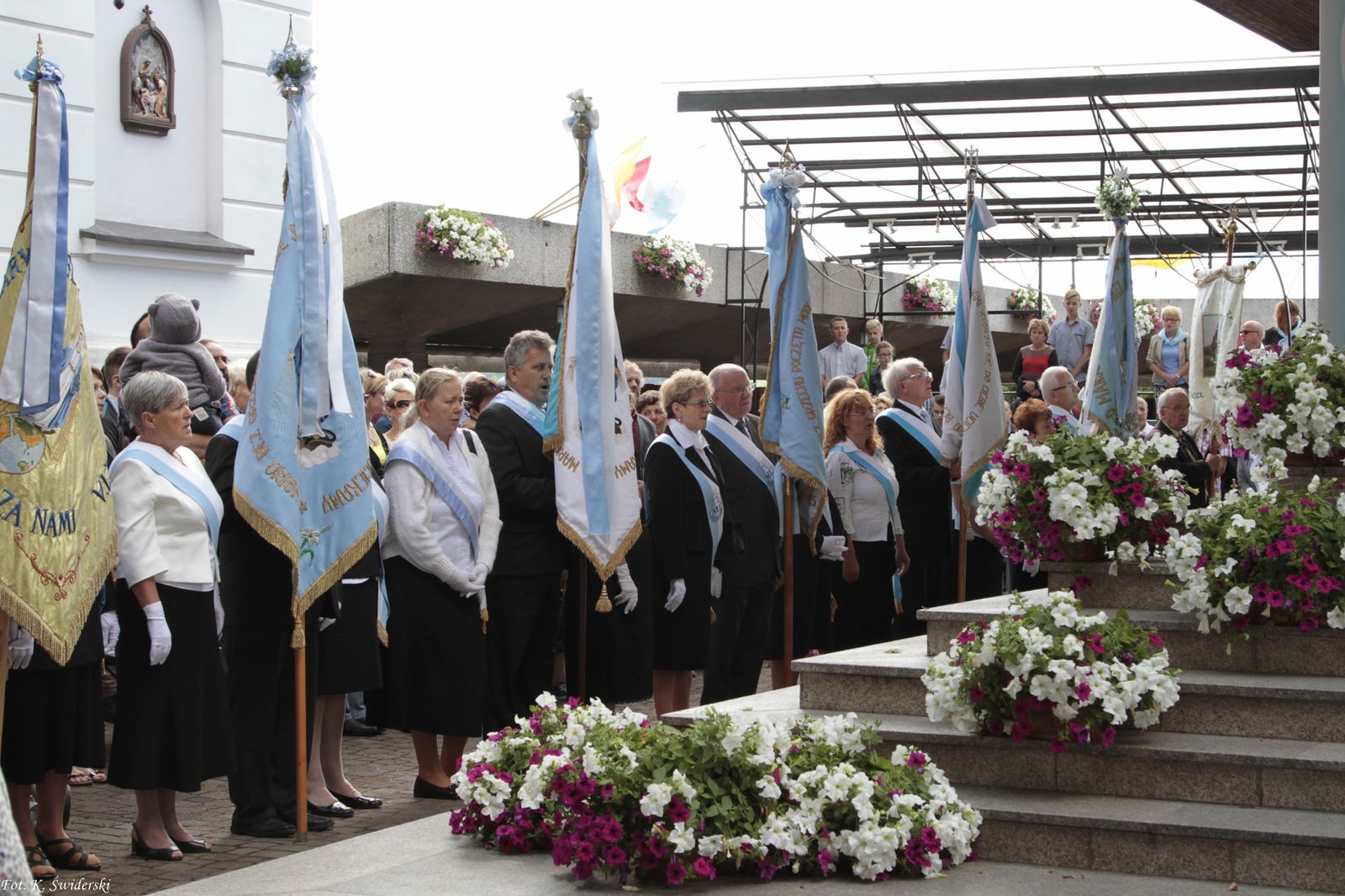 Podczas wieczornej Eucharystii o godzinie 18.30 swoją pielgrzymkę przeżywali czciciele Matki Bożej Nieustającej Pomocy, Niepokalanego Serca NMP, Róże Różańcowe oraz przyjaciele Radia Maryja. Mszy Świętej przewodniczył i kazanie wygłosił JE ks. bp Władysław Bobowski. W swej homilii pytał: „Po co przybyliśmy tutaj (…)? Najpierw (…) aby dziękować (…) za łaskę wiary i miłości płynącej do Boga i ludzi”. Przybyliśmy także, aby dziękować za błogosławieństwo w pracy i za jej owoce. Tą pracą służymy Bogu i ludziom. Służymy także sobie, wypełniając nakaz: „Czyńcie sobie ziemię poddaną”, zarabiamy na nagrodę w niebie i godne życie na ziemi. Maryja jest przykładem pracowitości. Służyła wiernie w ubogiej, nazaretańskiej rodzinie. Przychodzimy tutaj również po to, by doświadczyć matczynej miłości Maryi, zachwycić się Jej pięknem i świętością. „Od Matki wraca się lepszym”, mówił biskup. Wracamy lepszymi, otwartymi na potrzeby innych ludzi. Oddalając się od Boga, który jest prawdą, miłością, życiem, źródłem wiecznego szczęścia, człowiek staje się coraz bardziej nieludzki, zdolny nawet do zabijania. Przykładem tego może być zabijanie nienarodzonych dzieci, a także starszych, schorowanych. Wierzymy, że to Maryja obroniła nas w czasie Potopu Szwedzkiego, Bitwy Warszawskiej, pomogła odzyskać wolność po wojnie. Kończąc homilię, kaznodzieja nazwał Maryję: „Madonną Dobrej Przemiany”, którą powinniśmy prosić, by uchroniła naszą ojczyznę od ateizacji i demoralizacji. Msza Święta zakończyła się, jak w każdy dzień, procesją eucharystyczną.