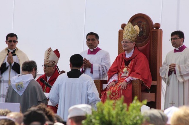 Mszy św. beatyfikacyjnej przewodniczył wysłannik papieża Franciszka, kardynał Angelo Amato w otoczeniu ponad 60 biskupów z Peru, Włoch, Polski oraz USA, a także 350 kapłanów. Polskę reprezentowali księża biskupi: abp Stanisław Gądecki, bp Andrzej Jeż, bp Roman Pindel, bp Jerzy Mazur, bp Tadeusz Pieronek, Bp Marian Kruszyłowicz OFMConv. Obecne było grono kapłanów z diecezji bielsko-żywieckiej, tarnowskiej oraz ze zgromadzenia ojców franciszkanów. Obecni byli także misjonarki i misjonarze tarnowscy pracujący w Peru i Boliwii. Na uwagę zasługuje pewien fakt. Otóż księża tarnowscy pracujący na misjach w Boliwii, do Chimbote przybyli na motocyklach, pokonując tam i z powrotem trasę liczącą przeszło 6 tysięcy kilometrów.