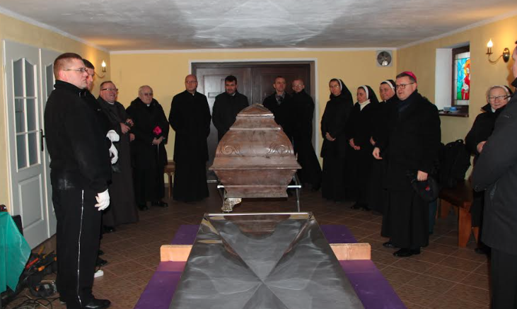 Złożeniu doczesnych szczątków do sarkofagu, wykonanego według projektu artysty rzeźbiarza Tadeusza Wojtasika z Torunia, towarzyszyła modlitwa kościoła „Nieszpory”, podczas której siostry ze Zgromadzenia św. Teresy od Dzieciątka Jezus, w obecności swego duchowego Ojca i Założyciela, odnowiły śluby zakonne, w duchu swego charyzmatu.