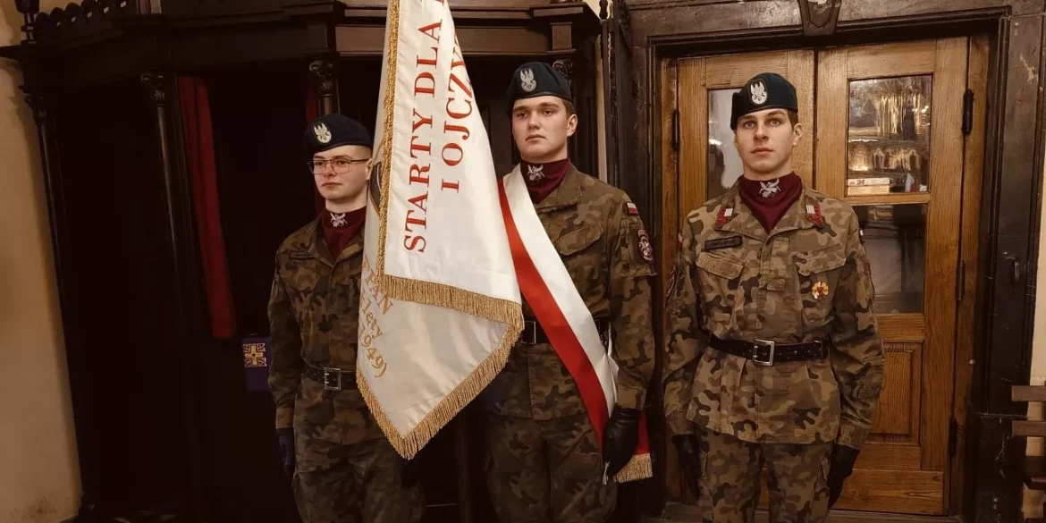 Po uroczystej Mszy św. nasi wychowankowie zaprezentowali montaż słowno-muzyczny, w którym przypomnieli zebranym krótką biografię i działalność jezuity niezłomnego, przeplataną śpiewem pieśni patriotycznych. Po części artystycznej, za Bursowym sztandarem udaliśmy się pod pamiątkową tablicę poświęconą ks. Gurgaczowi, umieszczoną na budynku Bursy, by złożyć kwiaty.