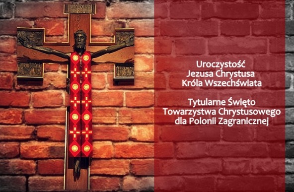Warto i trzeba zwrócić uwagę na jeszcze inny rys tego miesiąca, który wiąże się ściśle z naszym zgromadzeniem zakonnym – Towarzystwem Chrystusowym dla Polonii Zagranicznej, a także ze Zgromadzeniem Sióstr Misjonarek Chrystusa Króla dla Polonii Zagranicznej. Ważnym dniem, ważnym świętem dla każdego chrystusowca i każdej misjonarki jest uroczystość tytularna wspólnoty zakonnej. A jest nią uroczystość Jezusa Chrystusa, Króla Wszechświata przypadająca w ostatnią niedzielę roku liturgicznego i stanowiąca jakby szczególne jego zwieńczenie. Chcemy bowiem wyznać wiarę w Chrystusa jako Pana i Króla wszechrzeczy, co pięknie wyrażają hymny liturgii godzin tej uroczystości: