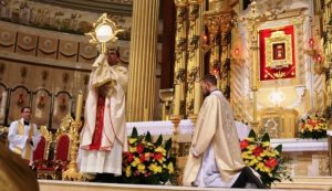 Po Mszy św. ksiądz biskup, kapłani, asysta liturgiczna oraz wszyscy wierni udali się w procesji eucharystycznej alejkami licheńskiego Sanktuarium, w trakcie której przeszli pod Bramą Jubileuszową znajdującą się na placu przed bazyliką. Po zakończonej procesji biskup udzielił wszystkim zgromadzonym błogosławieństwa Najświętszym Sakramentem.