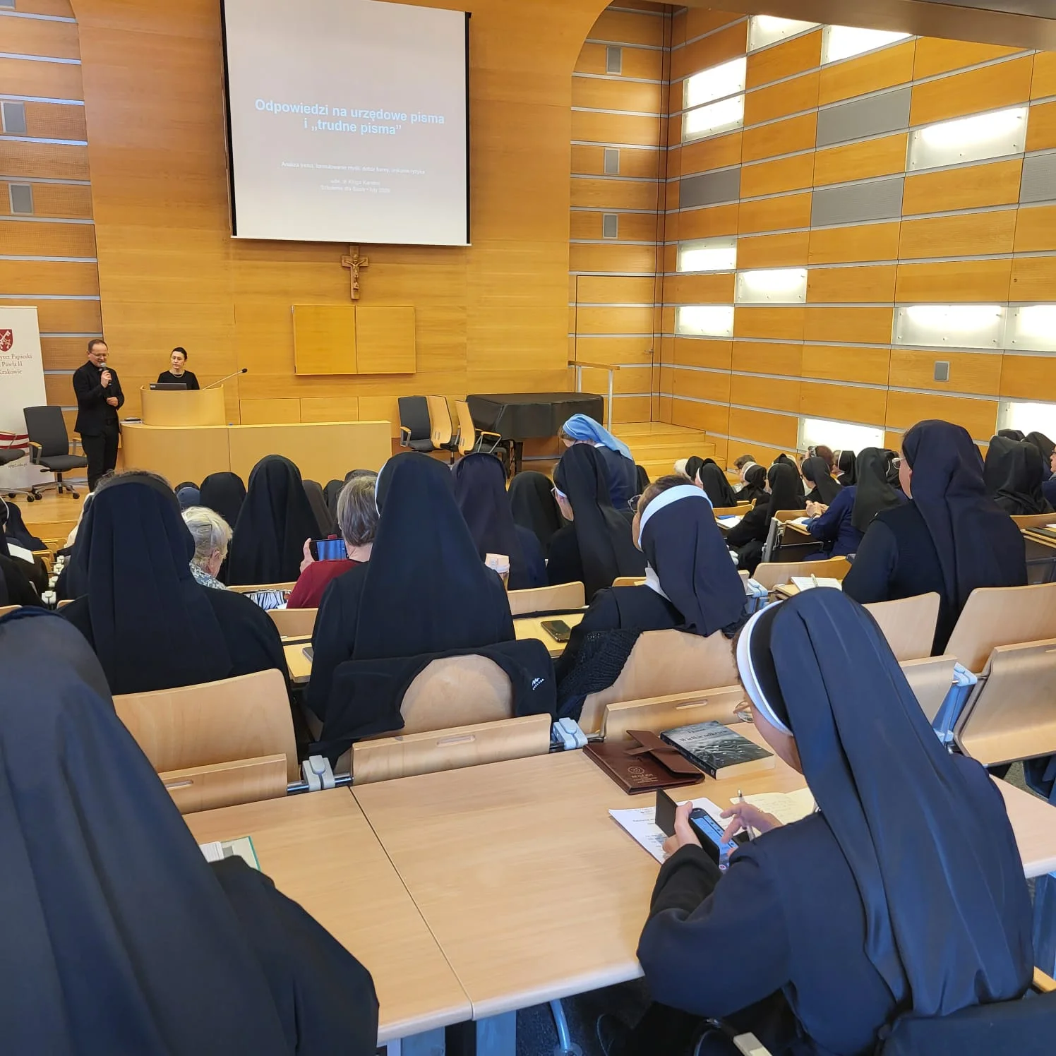 W dniach 13-14 lutego 2026 roku w Kampusie Uniwersytetu Jana Pawła II w Krakowie, w przestronnej auli Biblioteki Uniwersytetu, odbyło się szkolenie dedykowane Siostrom Sekretarkom Zakonnym zorganizowane przez ks. prof. Piotra Kroczka oraz s. Krescencję Huk, sekretarkę generalną Konferencji WPŻZZ w Polsce. Wydarzenie zgromadziło 99 sióstr z różnych zgromadzeń zakonnych w Polsce, które na co dzień pełnią ważną funkcję sekretarek w swoich wspólnotach. Spotkanie to, zorganizowane z myślą o podnoszeniu kwalifikacji w dynamicznie zmieniającym się środowisku administracyjnym Kościoła, przyciągnęło uczestniczki z całego kraju, tworząc przestrzeń do profesjonalnego rozwoju i integracji.