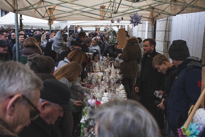 Przez cały dzień przy jarmarkowych kramach można było wybierać i kupować różnorakie ozdoby świąteczne, m. in.: choinki, bombki, stroiki, aniołki, jak i inne własnoręcznie wykonane ozdoby. Nie zabrakło również domowych ciast i różnorakich regionalnych wyrobów. Taka obfitość produktów to efekt niesamowitego zaangażowania się grup, stowarzyszeń, firm, szkół i przedszkoli, które ofiarując swój czas i talenty, włączyły się w przygotowanie tego wielkiego i pięknego dzieła misyjnego.