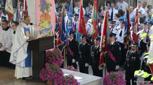 W homilii kaznodzieja wspomniał, jaką wielką wartość ma rodzina i małżeństwo oraz jak ważny jest dla niej szacunek i troska. Powiedział w swojej homilii, że (…) strażacy wiedzą, że jedna mała iskra może spalić wielki las, podobnie jedno złe słowo może zburzyć najlepsze małżeństwo. Kaznodzieja podziękował strażakom za ich trud, mówił, że (…) gotowość strażaków jest nam potrzebna i jesteśmy z niej dumni, bowiem zauważamy, że w dzisiaj są ludzie, którzy nie wszystko przeliczają na pieniądze, poświęcając swoje życie i zdrowie dla innych oraz że strażacy, mimo że świat mówi inaczej, w Bogu szukają siły do życia i pracy, czego przykładem są dzisiaj wszyscy strażacy przybyli przed oblicze Matki Bożej Tuchowskiej.