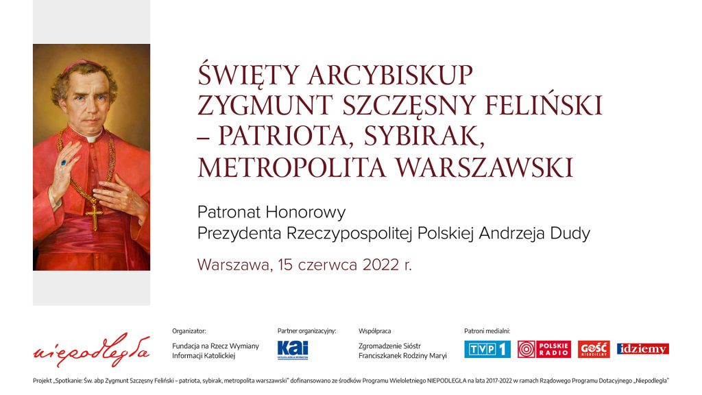 Projekt „Spotkanie: Św. abp Zygmunt Szczęsny Feliński – patriota, sybirak, metropolita warszawski” dofinansowano ze środków Programu Wieloletniego NIEPODLEGŁA na lata 2017-2022 w ramach Rządowego Programu Dotacyjnego „Niepodległa”.