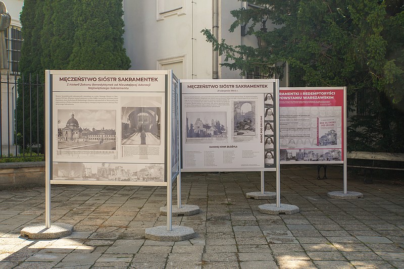 Przed klasztorem sakramentek na Rynku Nowego Miasta w Warszawie można obejrzeć wystawę plenerową, poświęconą heroicznej postawie i śmierci w czasie Powstania Warszawskiego 34 benedyktynek sakramentek i 33 redemptorystów z klasztoru na Woli.