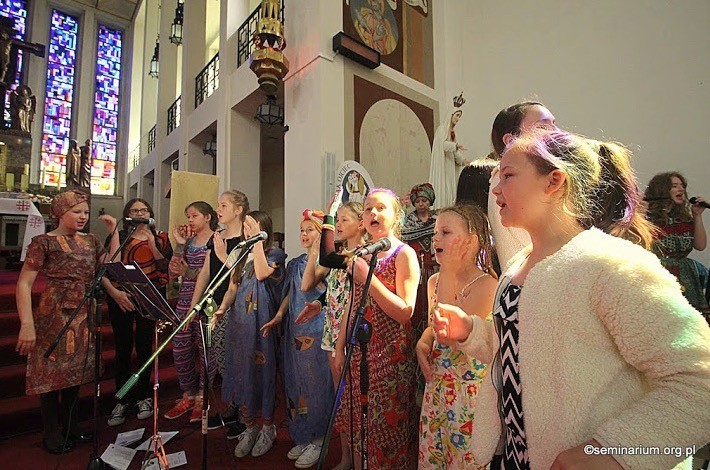 Po Mszy Świętej nadszedł czas na zajęcia warsztatowe. Uczestnicy podzieleni na 5 grup kontynentalnych udali się na spotkania plastyczne, muzyczne, taneczne i filmowe. Doświadczeniem praktyki na Tajwanie dzielił się z zebranymi nasz neoprezbiter o. Łukasz Chrunik SVD. Dzięki takiemu bogactwu aktywności dzieci miały okazję spróbować różnych form twórczości i zawiązać nowe znajomości.