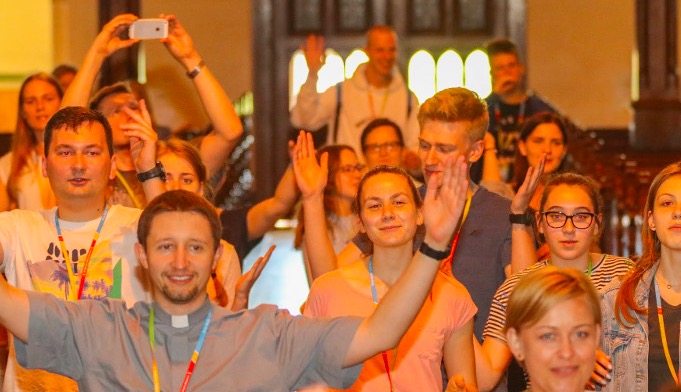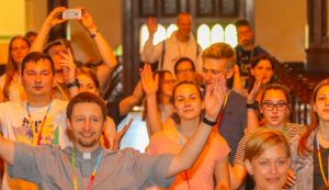 Po wspólnych modlitwach, rozśpiewaniu i przeniesieniu się do „suchego kąta” w werbistowskim Domu Dobrego Pasterza nadszedł czas na specjalnego gościa – duszpasterza powołań i dyrektora biura organizacyjnego ŚDM, ks. Emila Parafiniuka.