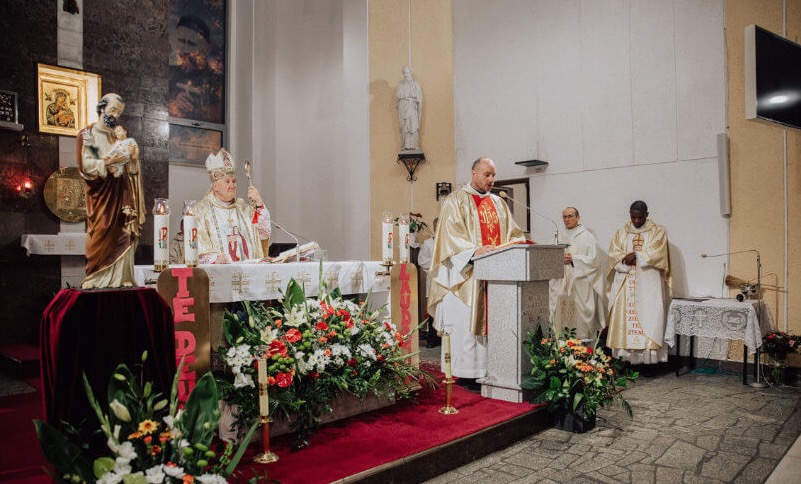 Uroczystej Mszy Świętej jubileuszowej przewodniczył ordynariusz warszawsko-praski, bp Romuald Kamiński, który przy tej okazji udzielił bierzmowania młodzieży z naszej parafii. W uroczystości wzięli też udział współbracia werbiści na czele z o. prowincjałem Sylwestrem Grabowskim, księża z dekanatu, siostry zakonne oraz parafianie, przyjaciele i sympatycy naszej parafii.