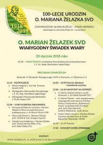 Rok 2018 przebiegał będzie w naszej Prowincji pod znakiem obchodów 100-lecia urodzin o. Mariana Żelazka SVD, misjonarza trędowatych w Indiach.