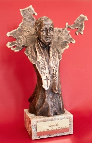 Autorką statuetki Nagrody im. o. Mariana Żelazka jest artystka rzeźbiarka Dorota Dziekiewicz-Pilich.