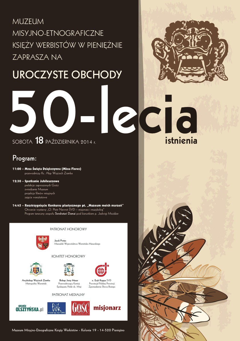 18 października 2014 roku Muzeum Misyjno-Etnograficzne Księży Werbistów w Pieniężnie obchodzi 50-lecie swojej działalności.