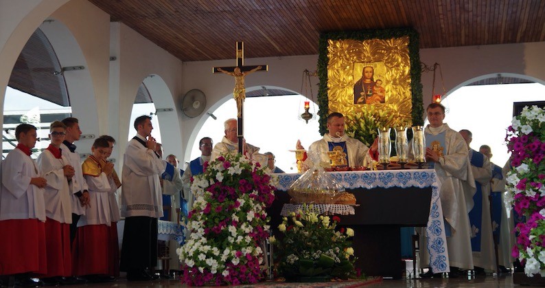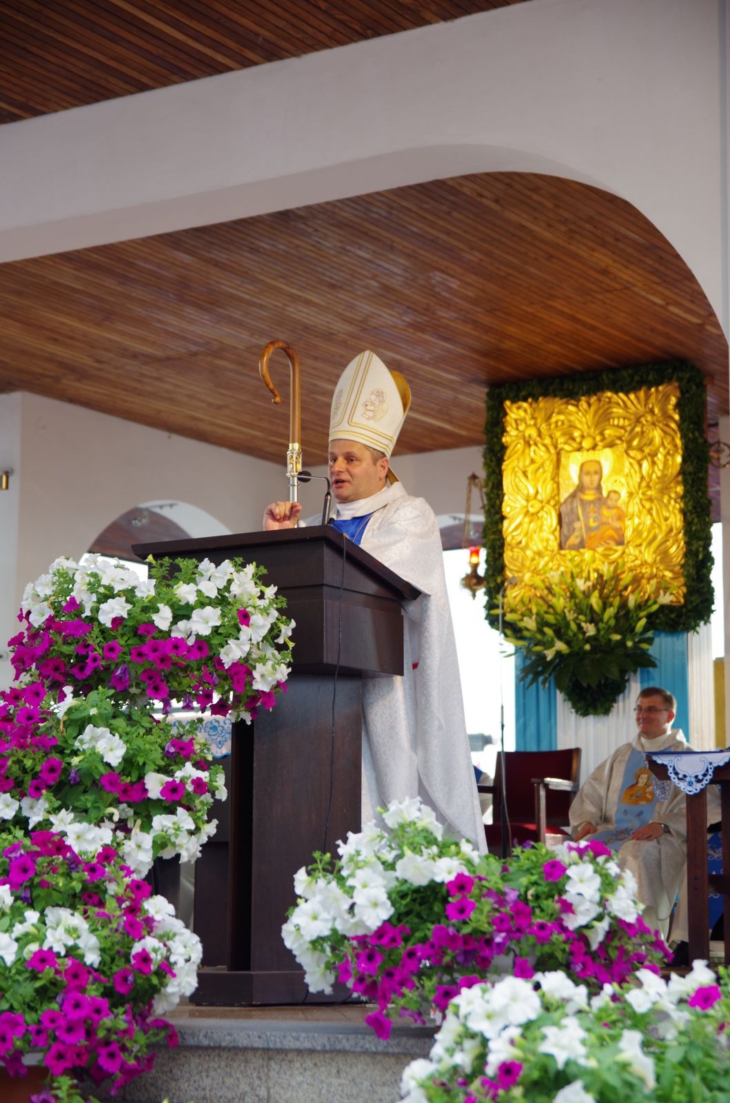 Już na samym początku homilii biskup zadał pytanie zgromadzonym o wielkość posiadanego majątku, tego odziedziczonego i wypracowanego samemu. A pytał, by każdy mógł uświadomić sobie, gdzie są nasze fundamenty. Dziedzictwo nasze wyrasta z chrztu. Nie wolno go nikomu zmarnować. Kaznodzieja pytał także wiernych: „Co dla Ciebie, jako chrześcijanina jest najważniejsze?”. Trzeba sięgnąć fundamentów, a nie zadowalać się powierzchownymi odpowiedziami. Jeśli dobrze czytamy teraźniejszość i patrzymy w przeszłość, to nie pogubimy się w przyszłości, pójdziemy dobrą drogą. A jak ubogacić to nasze dziedzictwo? Zapragnąć życia w łasce uświęcającej. I choć biskup wyraził radość z kolejek przed konfesjonałami, to przypomniał jednocześnie, że nie tylko w czasie odpustu, ale ciągle potrzeba badać serce, czy jest mieszkaniem Boga. Wiara to skarb otrzymany od przodków, a nie dodatkowy element w życiu, bez żadnego z nim związku. Biskup skierował również słowo do strażaków, by prosili o wiarę, by być prawdziwymi mężczyznami. „Bez Bożej łaski nie pójdziemy dobrą drogą”.