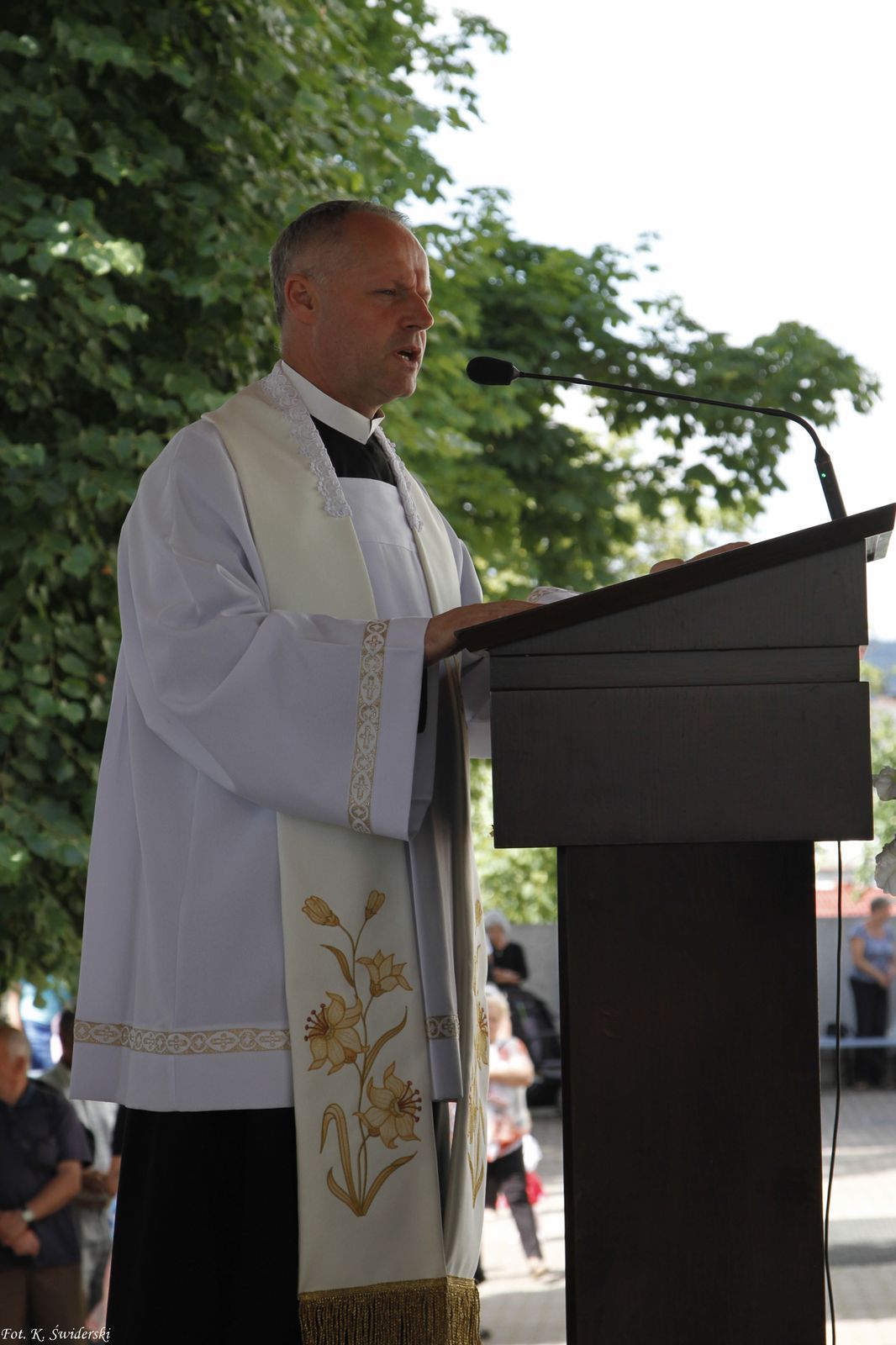Ks. prałat Zbigniew Guzy, kapelan Światowego Związku Żołnierzy AK, był celebransem i kaznodzieją na sumie odpustowej, która zgromadziła m.in. żołnierzy AK, kombatantów i żołnierzy represjonowanych. Kaznodzieja wspomniał przykład człowieka, który przed wojną i w trakcie jej trwania był związany z ziemią tarnowską. Chwile przed obrazem Matki Bożej Tuchowskiej były dla niego zaszczytem, że może być tak blisko niej. Każdy z nas przychodzących tutaj, może powiedzieć, z czego wynika ta wyjątkowość przebywania przy Maryi. „Przychodzimy (…) by spotkać się z Matką. (…) Z Matką jest dobrze, z Matką jest bezpiecznie”. Ks. prałat zaznaczył, że są z nami ludzie wyjątkowi, bo dla nich Ojczyzna, jej wolność, niepodległość są najważniejsze. Cytując słowa, które niegdyś wypowiedział abp Sławoj Leszek Głódź, zwrócił się do zebranych: „Kto was tego nauczył? Kto was nauczył miłości ojczyzny? (…) Ktoś w was musiał ugruntować to przekonanie, że warto oddać (…) nawet to, co najcenniejsze”. Odpowiedzią na te pytania jest dom, szkoła, Kościół, Wojsko Polskie. Kochać ojczyznę to znaczy pokonywać dla niej własne słabości, bronić jej, nawet oddając własne życie. I takimi bohaterami, wymienionymi przez kaznodzieję, są niewątpliwie: Inka, której babcia powtarzała, że trzeba kochać Polskę zawsze: w radości i smutku, w wolności i niewoli, a także kpt. Władysław Łukasik, czy Leopold Okulicki. Msza zakończyła się uroczystą procesją eucharystyczną.
