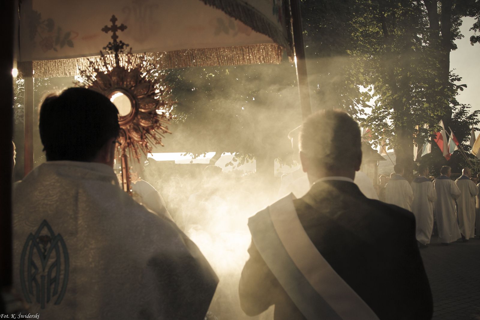 Piękną, słoneczną pogodą przywiał nas czwarty dzień odpustu – poniedziałek. Hasłem dnia były słowa: Żyjemy dziedzictwem wiary Ojców w naszym narodzie. „Abyście nigdy nie zwątpili i nie znużyli się i nie zniechęcili, abyście nie podcinali sami tych korzeni, z których wyrastamy”. (JP II Kraków 10.06.1979). Po pierwszej Mszy Świętej o godz. 6.00 pielgrzymi odśpiewali Godzinki ku czci Najświętszej Maryi Panny.