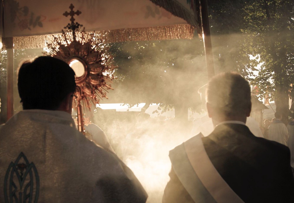 O godzinie 14.45 klerycy WSD redemptorystów poprowadzili koronkę do Bożego Miłosierdzia, po której rozpoczęła się Eucharystia z udziałem grup modlitewnych Ojca Pio. Eucharystii przewodniczył i homilię wygłosił ks. prałat Andrzej Liszka. U początku homilii, odwołując się do osobistego doświadczenia z 10 czerwca 1979 roku, kaznodzieja przypomniał hasło dzisiejszego dnia. Możemy być dumni z faktu, że kolejne pokolenia zostawiły w dziejach historii trwały ślad swojej wiary, umiłowania Pana Boga i człowieka oraz troski o poszanowanie tych wartości, które wraz z chrztem Mieszka I zostały przeniesione na nasze ziemie. Polska nie była inna niż chrześcijańska. Zaistniała w momencie chrztu. Nie podcinajmy tych korzeni, z których wspólnie wyrastamy. „Naszym świętym obowiązkiem jest kochać nasze narodowe dziedzictwo, dziedzictwo naszej wiary”. A kochać ojczyznę, to pielęgnować w sobie i podtrzymywać szacunek do naszej historii, tradycji, przeszłości. Narody które zapominają, które odcinają się od swojego korzenia – stracą życie. Winniśmy przodkom pamięć, ale i zobowiązanie, że następnym pokoleniom poniesiemy to otrzymane dziedzictwo wiary. Na to trzeba nam zwrócić uwagę zwłaszcza teraz, kiedy przeżywamy 1050. rocznicę chrztu Polski. 1050 lat pada ziarno dobrej nowiny na nasza polską ziemię „Myślę, że nie będzie żadną przesadą jeżeli powiem, że ta siejba (…) przyczyniła się niejednokrotnie do uratowania od rozpadu i zagłady nasz naród”. Czym byłaby dziś nasza Ojczyzna gdyby nie ten ewangeliczny siew, gdyby nie wiara, gdyby nie Kościół, umacniany ziarnem dobrej nowiny. Kaznodzieja zakończył homilię mocnymi słowami, że jeśli zabraknie wiary – zginiemy, stąd trzeba nam prosić Matkę „z tuchowskiej Kany” o wstawiennictwo u Jej Syna, by naród zrozumiał, że Ojczyzna to dziedzictwo, że nie można odcinać się od korzeni.