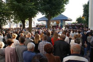 Msza Święta, pod przewodnictwem o. Piotra, rozpoczęła się o godzinie 7:00. Ojciec Piotr wygłosił też homilię do zebranych wiernych. Zaczął on od zaznaczenia, że człowiek, który naprawdę kocha, chce zobaczyć twarz ukochanej osoby, dlatego właśnie my tak licznie zgromadziliśmy się przed obrazem Matki Bożej Tuchowskiej. Gromadzimy się tutaj, prosząc o to, by świat był lepszy, i dobrze, że o to prosimy, ale lepszy świat nie będzie darem z niebios, który przyjdzie bez wysiłku. Lepszy świat mamy tworzyć my, swoją dobrocią i miłością, której możemy uczyć się właśnie tutaj, u Maryi. Musimy pytać się Jej, jak w tym świecie, pełnym przemocy i odrzucenia, mamy kochać i być dobrzy. Idąc za przykładem Matki Bożej, nie sposób nie zauważyć Jej postawy zawierzenia się Bogu. Nawet pod krzyżem, gdy umierał Jej Syn, nie usłyszeliśmy słowa wyrzutu czy skargi. Nam dziś niestety często brakuje tej wiary. Kiedy człowiek myśli, że już wszystko wie i ma wszystko na wyciągnięcie ręki, dochodzi do wniosku, że wiara jest mu niepotrzebna. Kaznodzieja zapytał więc: „Czy wiara jest nam jeszcze potrzebna? Czy potrzebna jest nam taka postawa zawierzenia?”. Jest potrzebna, ponieważ dopiero kiedy naprawdę żyjemy wiarą, kiedy ona staje się w naszym życiu ważna, zaczynamy widzieć jej owoce. Dopiero kiedy sercem zawierzymy się Bogu, możemy okazywać innym miłość i dobroć. O. Piotr zauważył też, że choć często mamy dobre chęci, by rzeczywiście zawierzyć się Bogu, by być miłosiernymi, dobrymi, kochającymi ludźmi, to w sytuacjach nerwowych, czy gdy ktoś nas zrani, okazujemy się agresywni, mściwi czy nawet bezduszni. Tutaj Maryja daje nam kolejną wskazówkę, byśmy uważnie słuchali. Ciężko będzie nam kochać Boga i innych, jeśli będziemy skupieni tylko na sobie. Musimy słuchać Boga i z troską oraz zrozumieniem słuchać ludzi. Kończąc, ojciec wezwał zebranych, by stawali się dobrymi ludźmi, a wtedy ten kawałek świata wokół nich także stanie się dobry.
