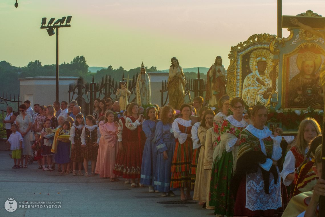 Mszę Świętą jak codziennie zakończyła uroczysta procesja z Najświętszym Sakramentem wokół sanktuarium, aż pod cudowny obraz Matki Tuchowskiej, gdzie pielgrzymi pożegnali się z Tą, która w Tuchowie tron sobie obrała i która gościła ich w swoim domu.
