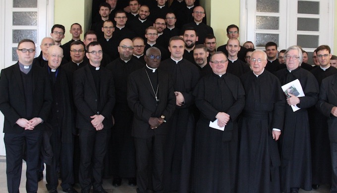 W pallotyńskim seminarium, w imieniu całej wspólnoty, ks. Mirosław Mejzner SAC, rektor, powitał Eminencję. Dalej kard. Sarah poprowadził krótką modlitwę wspólnotową w języku łacińskim, po czym wygłosił kilkunastominutową konferencję. Hierarcha zaznaczył, że Panem seminarium i pierwszym Mistrzem jest Jezus Chrystus. Powiedział m.in.: