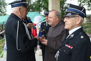 Przed sumą odpustową medalem im. Bolesława Chomicza, z napisem „Bogu na chwałę, ludziom na pożytek”, decyzją Prezydium Zarządu Głównego Związku Ochotniczych Straży Pożarnych RP, został odznaczony o. dr hab. Szczepan T. Praśkiewicz OCD. To on, jako konsultor Referatu Spraw Kanonizacyjnych w Kurii Metropolitalnej w Krakowie, postarał się o relikwie ex ossibus (z kości) św. Floriana, patrona strażaków, dla swojej rodzinnej piotrkowickiej parafii. Odznaczenie, na którego przyjęcie o. Szczepan otrzymał pozwolenie swojego przełożonego prowincjalnego, o. Tadeusza Florka OCD (nr 190/2019), wręczył druh Mirosław Pawlak, członek Prezydium Zarządu Głównego OSP z Warszawy. Przyjmując medal, odznaczony przypomniał, że „quidquid monachus adquirit, monasterium adqurit” (co zyskuje zakonnik, zyskuje klasztor), przyznając, że jest to wyróżnienie nie dla niego, ale dla Zakonu i dla Parafii, której duszpasterze – karmelici bosi z proboszczem, o. Piotrem Linką OCD, harmonijnie współpracują z jednostkami OSP dla chwały Bożej i dobra ludzi. Życzył także strażakom opieki ich Patrona, by mieli zawsze w swej bezinteresownej służbie dla dobra bliźnich „tyle powrotów ile wyjazdów”, i by stali na straży wartości religijnych i patriotycznych w naszej Ojczyźnie.