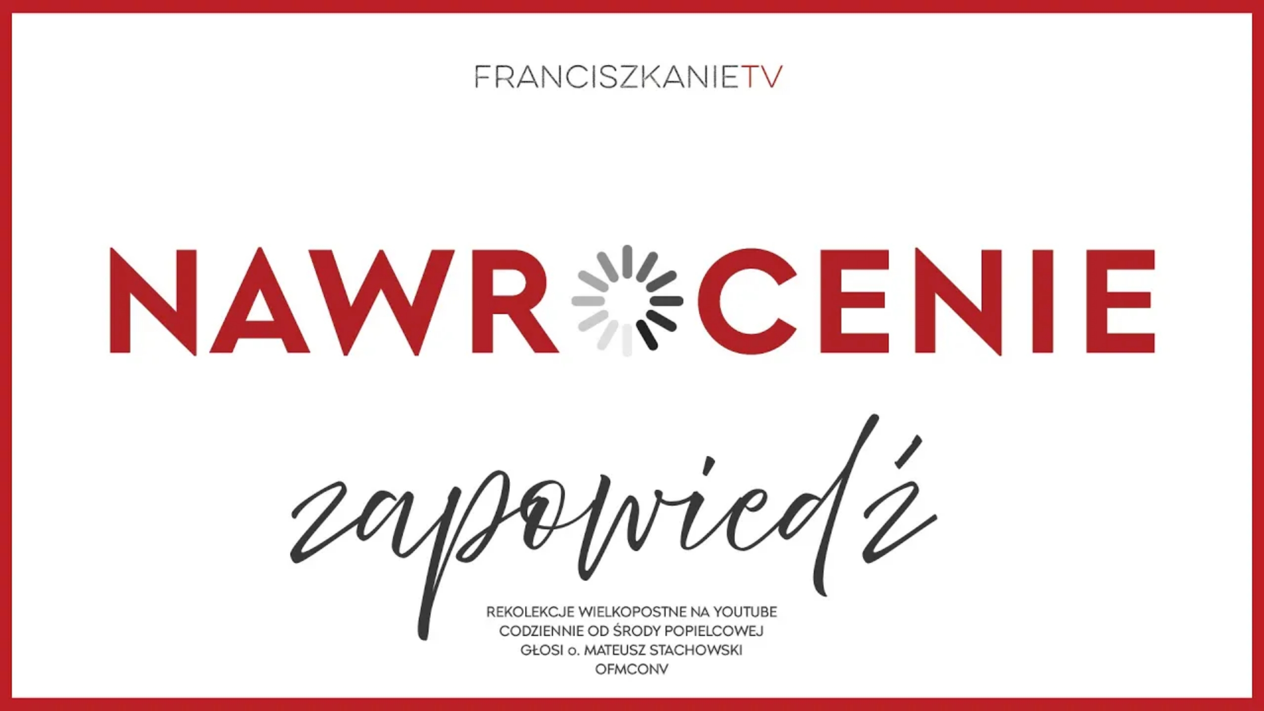 Redakcja FranciszkanieTV zaprasza na internetowe rekolekcje wielkopostne pt. „Zapętlone nawrócenie”, które prowadzi o. Mateusz Stachowski OFMConv. Odcinki oglądać można codziennie od Środy Popielcowej do Niedzieli Zmartwychwstania na stronie franciszkanie.tv