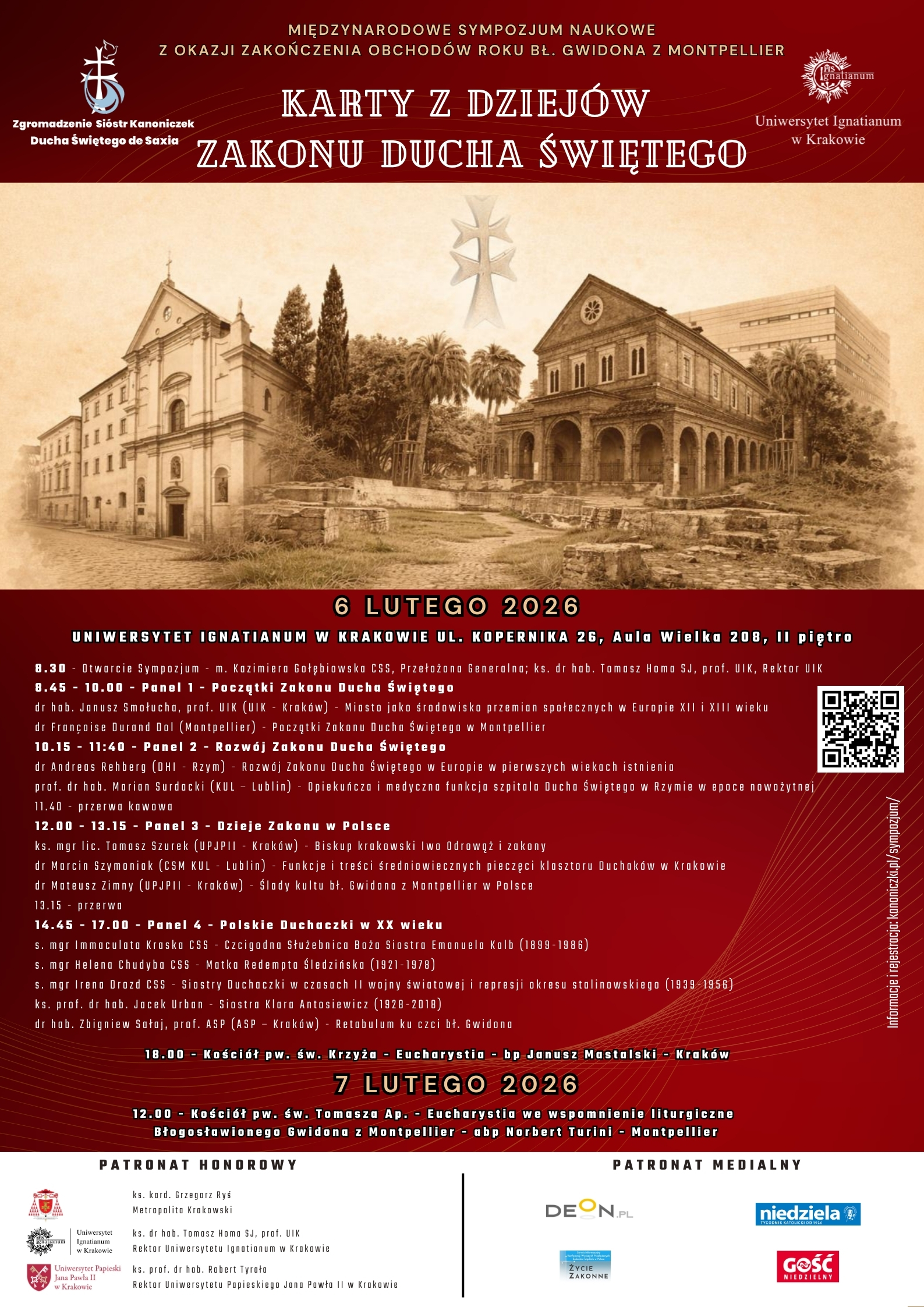 Sympozjum stanie się przestrzenią spotkania badaczy, duchownych i pasjonatów historii, którzy spojrzą na Zakon Ducha Świętego nie tylko jako na fakt z przeszłości, ale jako na żywą tradycję, która nadal inspiruje Kościół i świat. W programie m.in. prelekcje ekspertów, odkrywanie nieznanych wątków historycznych oraz refleksja nad aktualnością charyzmatu bł. Gwidona z Montpellier dziś.