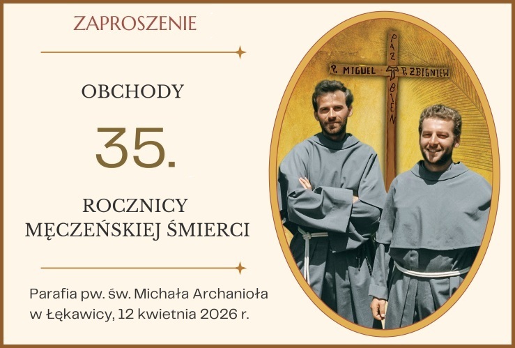 W najbliższą niedzielę, 12 kwietnia 2026 r., w Łękawicy koło Żywca odbędą się uroczystości związane z przypadającą w tym roku 35. rocznicą śmierci pierwszych polskich błogosławionych misjonarzy-męczenników z Pariacoto: bł. Zbigniewa Strzałkowskiego i bł. Michała Tomaszka. Łękawica jest rodzinną miejscowością tego drugiego.