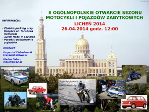 II Ogólnopolskie Otwarcie Sezonu Motocykli i Pojazdów Zabytkowych odbędzie się w sobotę, 26 kwietnia w Licheniu. Tego dnia do Sanktuarium Matki Bożej Licheńskiej zjadą właściciele jednośladów oraz pojazdów zabytkowych, aby u progu nowego sezonu motorowego prosić Licheńską Panią o bezpieczną jazdę i rozwagę podczas tegorocznych podróży swoimi pojazdami.