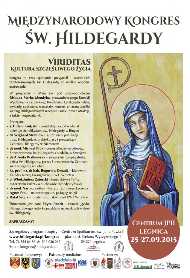 W programie – Msza św. pod przewodnictwem Biskupa, wykłady, spotkania, warsztaty, koncert, smaczne posiłki według Hildegardowych receptur i wiele innych atrakcji, a także niespodzianki.