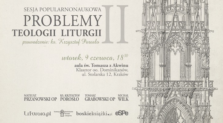 Sesję popularnonaukowa, zatytułowaną „Problemy teologii liturgii”, organizuje Dominikański Ośrodek Liturgiczny. Połączona ona zostanie z promocją książki ks. Krzysztofa Porosły „Liturgia Jezusa Chrystusa. O uwielbieniu Boga i uświęceniu człowieka”.