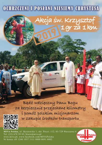 W dniach 21-28 lipca 2019 będzie obchodzony 20. Ogólnopolski Tydzień św. Krzysztofa wraz z misyjną „Akcją św. Krzysztof” – 1 grosz za 1 kilometr szczęśliwej jazdy na środki transportu dla misjonarzy.