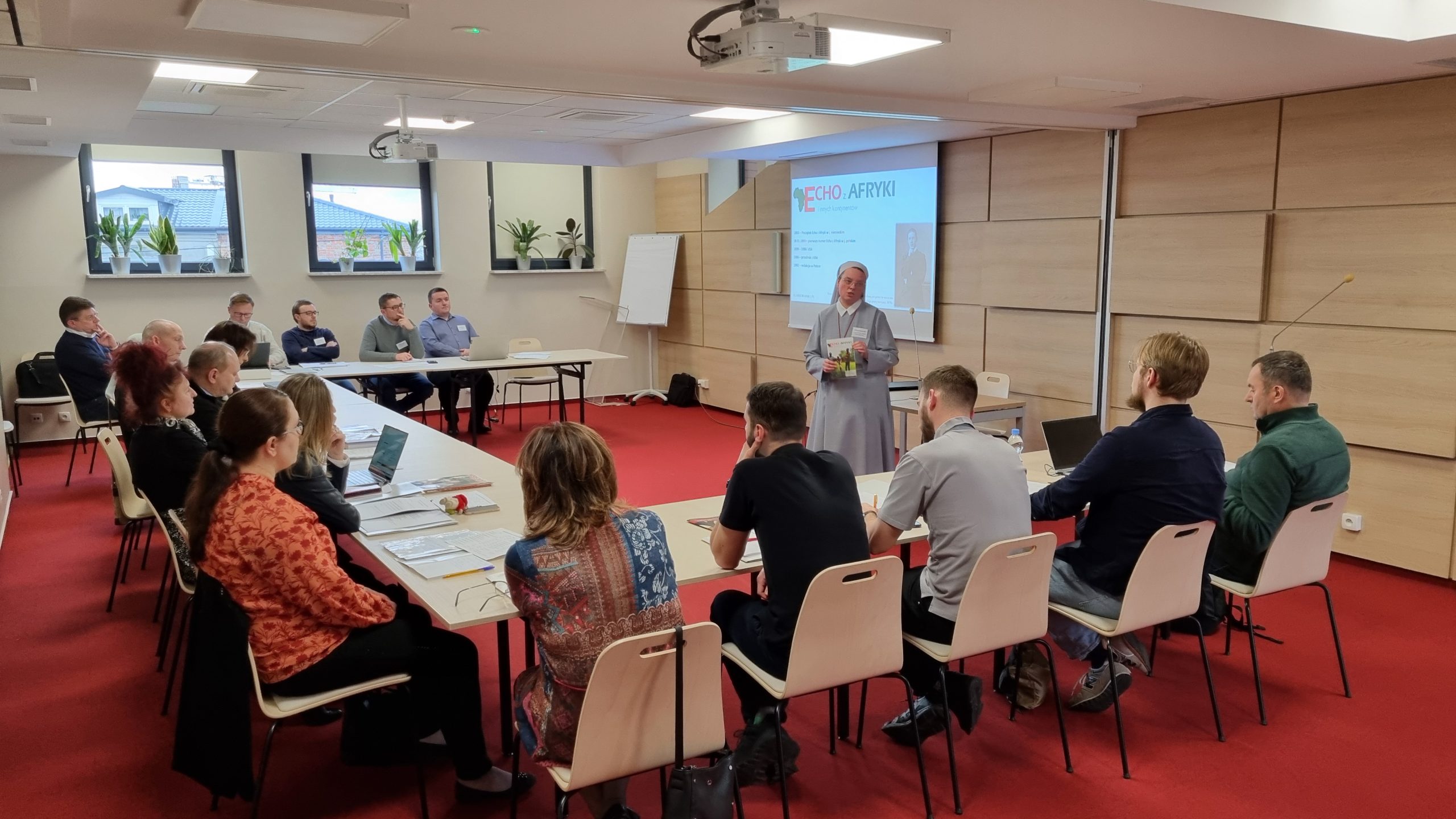W drugiej części zjazdu uczestnicy wzięli udział w szkoleniu w różnych praktycznych dziedzinach. Andrzej Danilewicz SVD mówił o tym jak poprawić jakość zdjęć publikowanych na łamach czasopism misyjnych, skąd je pozyskiwać, a także przybliżył związane z tym zagadnienie praw autorskich i majątkowych oraz prawa do wizerunku. Z kolei Mateusz Miernik, pracownik Katedry Tekstologii i Edytorstwa Instytutu Literaturoznawstwa KUL, przybliżył kwestię właściwego doboru krojów pisma do konkretnych treści. Swoistą wisienką na torcie były wystąpienia ks. prof. Wiesława Przyczyny i dr Magdaleny Jankosz z UPJPII na temat słownictwa religijnego. Ich prezentacja rozpoczęła się od dyktanda naszpikowanego terminologią kościelną pod tytułem po „Bożym Ciele cisza w kościele”. Wszyscy z uczestników polegli na tym teście, dlatego z tym większą uwagą wysłuchali przedłożenia zaproszonych gości.