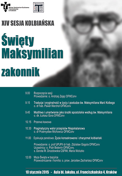 Zaproszeni prelegenci wygłoszą referaty poświęcone różnym aspektom życia św. Maksymiliana Marii Kolbego: o. dr hab. Paweł Warchoł OFMConv przybliży temat Tradycja i oryginalność w życiu i posłudze św. Maksymiliana Marii Kolbego, o. dr Przemysław Michowicz OFMConv powie o pragmatycznym walorze przepisów Niepokalanowa a o. dk. Łukasz Góra OFMConv omówi zagadnienia dotyczące modlitwy i umartwienia jako środków apostolskich św. Maksymiliana.