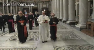 Ku zawodowi wiernych, którzy zgromadzili się przy głównym wejściu bazyliki, by powitać papieża, wszedł on z boku i całą półgodzinną wizytę poświęcił na modlitwę. Gdy wychodził, pozdrowił dominikanów pełniących w bazylice posługę spowiedników. „Bądźcie miłosierni w konfesjonale dla swych penitentów; bardzo tego potrzebują” – powiedział Franciszek i prosił, by pamiętali także o modlitwie w jego intencji.