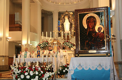 W procesji wokół Bazyliki zmieniają się delegacje, które wniosły Cudowną Ikonę do Bazyliki. Ostatnią z nich są nasi Bracia Strażacy z niepokalanowskiego klasztoru. To im przypadł zaszczyt aby wprowadzić Maryję do świątyni.